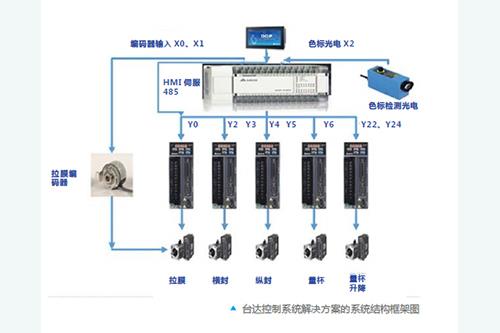 立體間歇式包裝機是包裝機中非常重要的一個分類,自動化程度較高、性能穩定,廣泛應用在化妝品、藥品、食品、保健用品、音像制品、文具用品、日用品等外包裝生產中。針對立體間歇式包裝機的需求特點,臺達提供包含臺達可編程控制器(PLC)、伺服驅動器以及人機界面(HMI)等自動化產品在內的解決方案,大幅提高機臺性能,解決了包裝機頻繁高速運行與停止切換的難題,并可規劃伺服驅動器與PLC的加減速曲線,幫助客戶實現包裝機伺服驅動器實時同步加減速的要求。