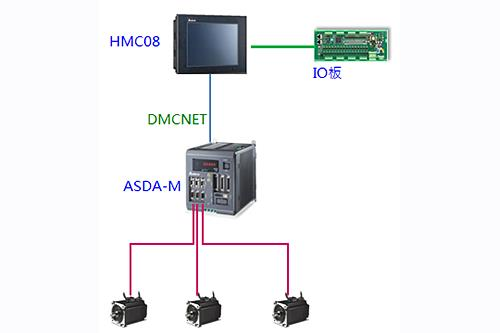 通過臺達人機控制器HMC系列為控制核心,可輕松在現場修改車床上下料程序,不需要更改底層程序代碼,從而使其臨場操作更加便捷靈活。此外,此類工件的加工對定位精度要求也很高,放置工件的允許精度最多不能超過10絲,如果誤差過大,會導致工件不能精確放到車床的卡盤里面。因此,臺達解決方案采用三機一體運動控制型交流伺服系統ASDA-M系列和高精度伺服馬達,通過DMCNET高速運動總線組成網絡,滿足客戶加工件的高精度加工需求。整體解決方案架構如圖2。