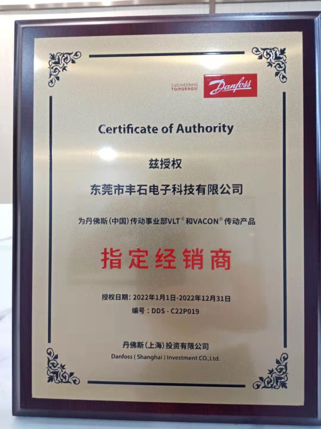 東莞豐石電子是臺達一級代理商,丹佛斯一級代理商,威綸通一級代理商及三菱代理商。