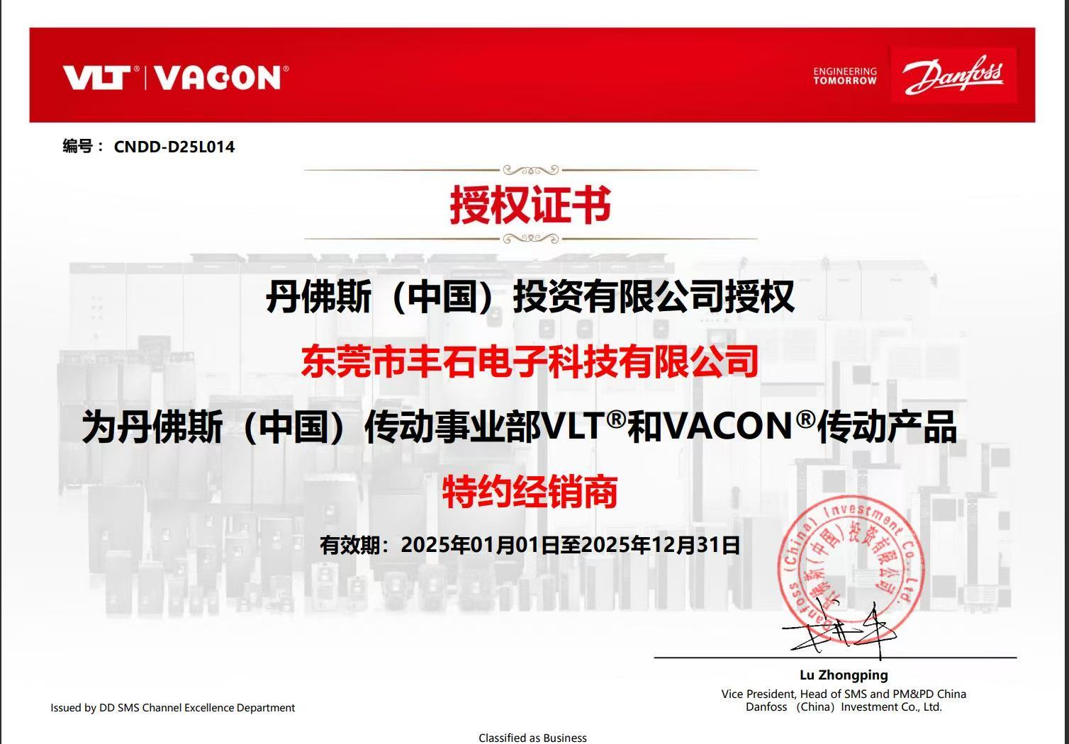 作為丹佛斯官方授權的一級代理商,東莞市豐石電子科技有限公司承諾: