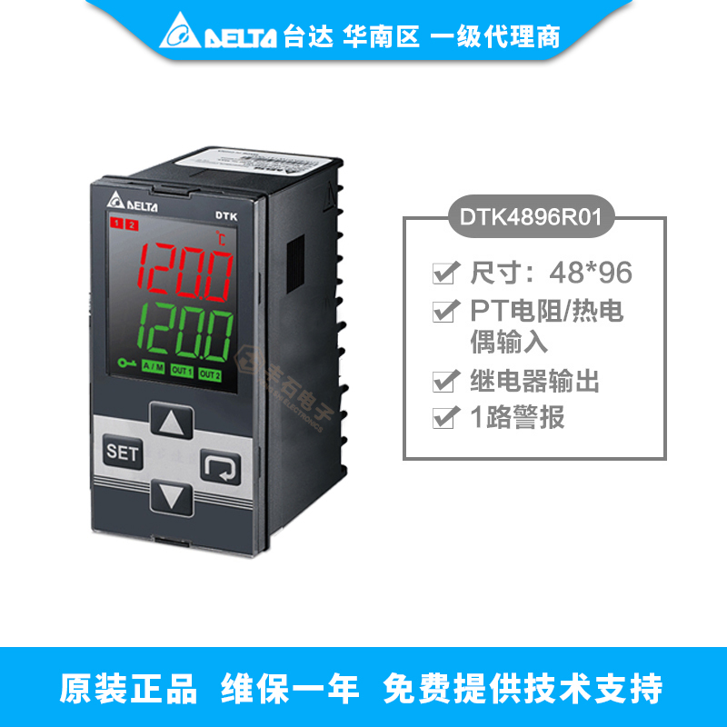 臺達智能溫度控制器 DTK4896R01 參數:高亮 LCD顯示,48*96,Pt電阻/熱電偶輸入, 繼電器輸出,1路警報