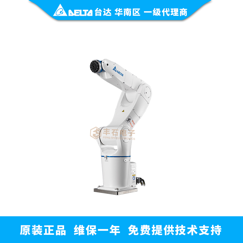 介紹:臺達垂直多關節工業機器人,除了達六軸的自由度,腕部中空設計、多種安裝及友善的操作接口可廣泛應用于3C電子、電子電機、金屬加工與橡塑料業,并滿足檢測、組裝、涂膠、移載、上下料、搬運、包裝、鎖螺絲等應用領域,成為您邁向工業4.0的最佳伙伴。 臺達垂直多關節型工業機器人具備6軸自由度并同時推出兩種不同規格,滿足不同的應用需求,讓臺達成為您邁向智能制造的理想伙伴。